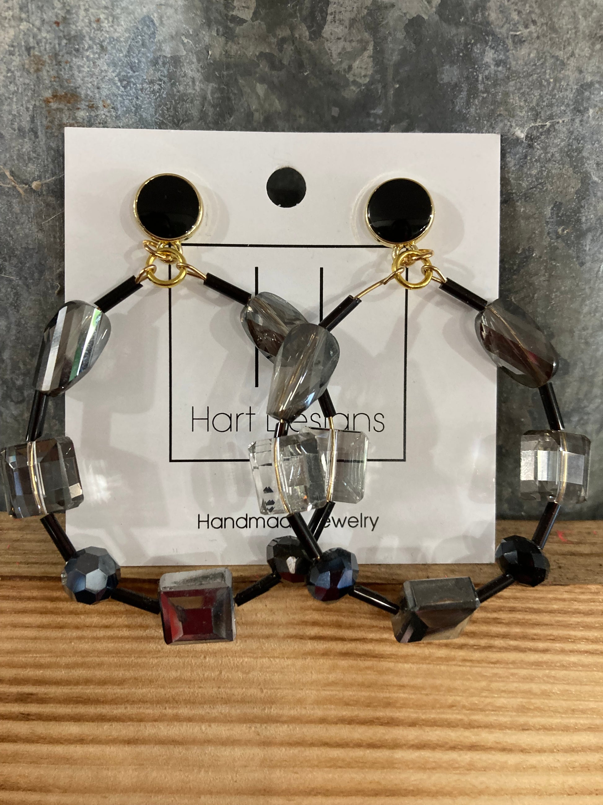 Introducing our Black Grey Gem Small Beaded Earrings - a must-have for any jewelry collection. These earrings offer a unique and elegant design, perfect for adding a touch of sophistication to any outfit. Made with beautiful black and grey gems, these earrings are both pretty and different, making them a stylish addition to any accessory collection.