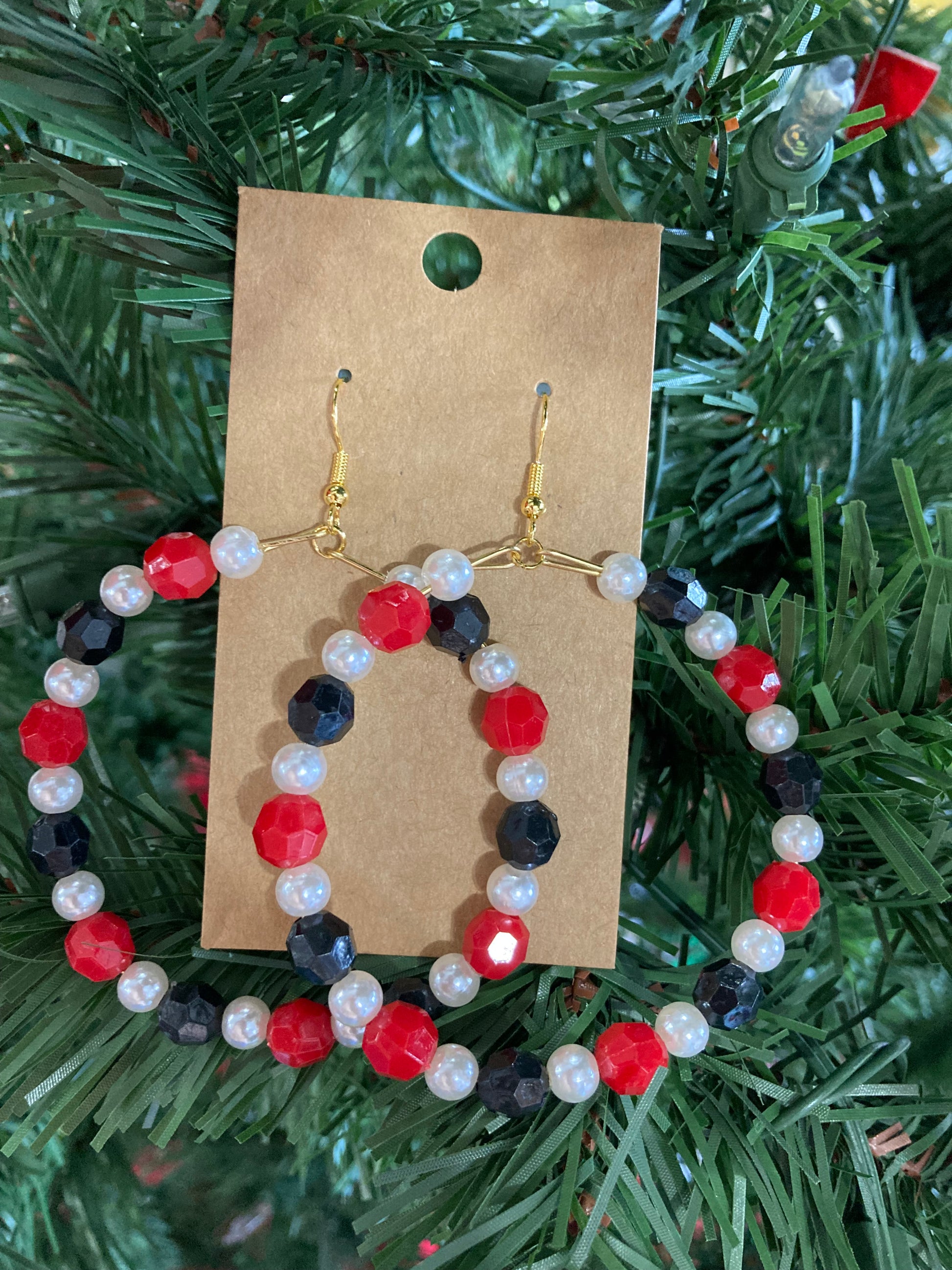 Red Pearled Black Beaded Earrings