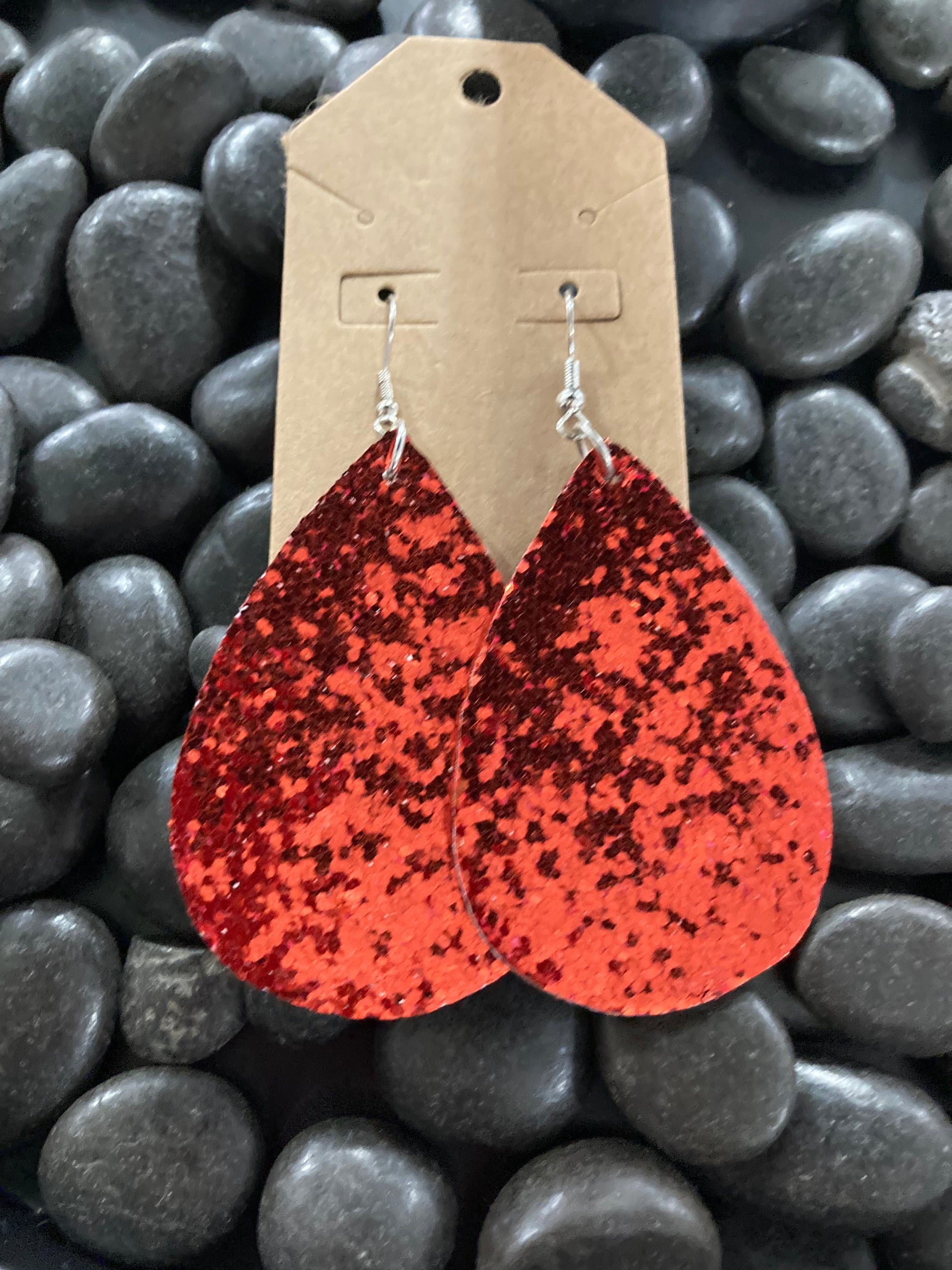 Red Sparkle Teardrop Earrings