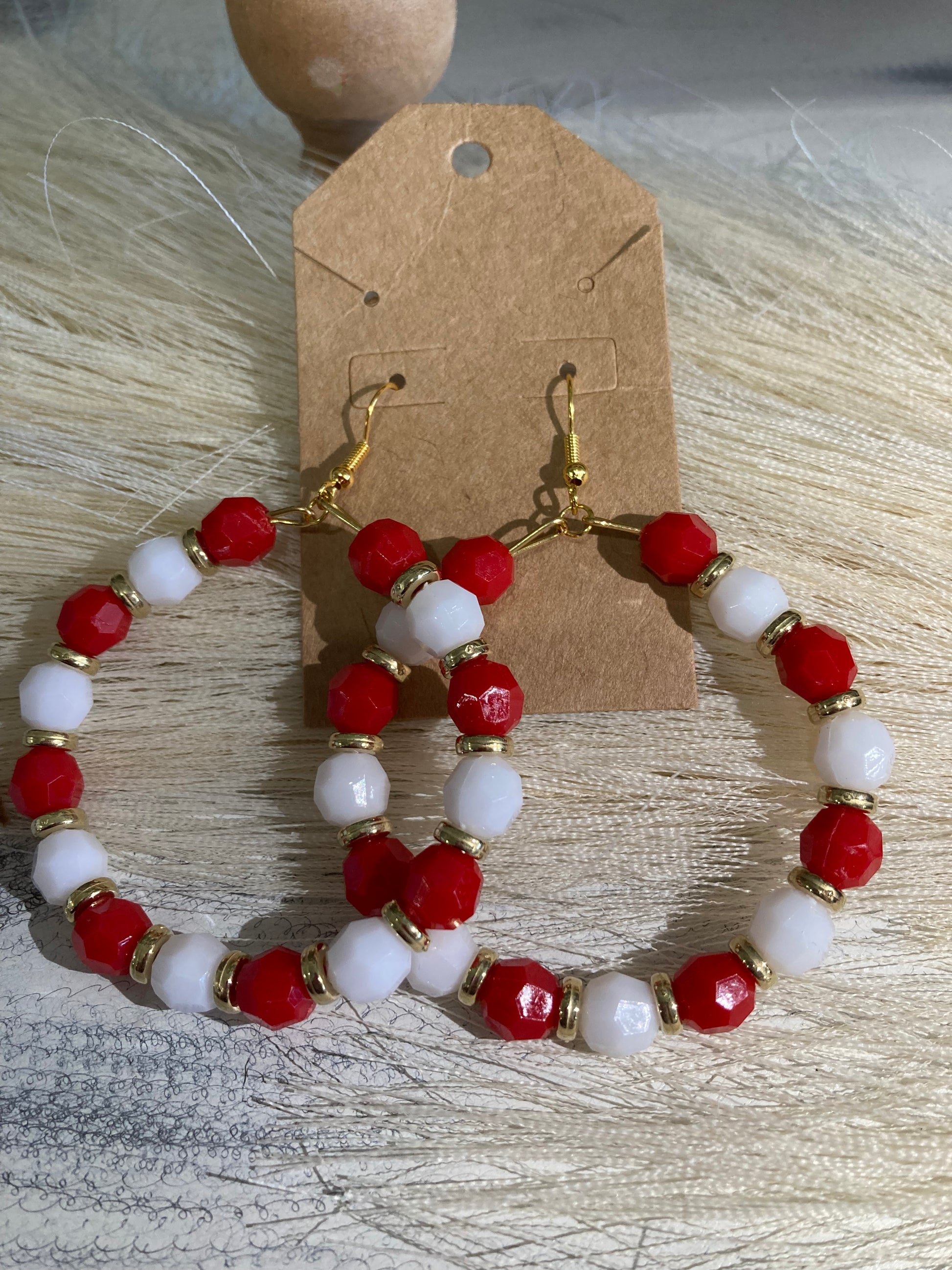 Red White Gold Disc Beaded Earrings