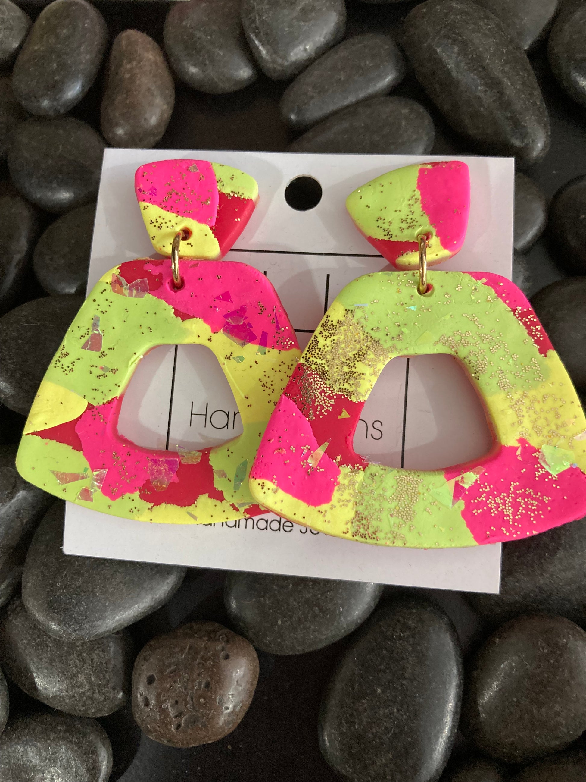 Discover a pop of color with our Vibrant Abstract Earrings. Adorned with unique heart-shaped designs and crafted from high-quality clay, these earrings add a cute touch to any outfit. With their vibrant colors and eye-catching shapes, they are sure to make a statement. Perfect for any fashion-forward individual looking to add a touch of playfulness to their style.